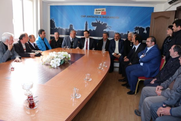 36.İl Kongresinde seçilen Ahmet Kumbul Başkanlığındaki yeni CHP Antalya İl Yönetimine hayırlı olsun ziyaretleri sürüyor. Selahattin Göğüş Başkanlığındaki CHP Akseki İlçe Yönetimi ve Ulaş Akbaş Başkanlığındaki CHP Kaş İlçe Yönetimi, kalabalık heyetler halinde İl Başkanı Ahmet Kumbul’u ziyaret ederek hayırlı olsun dileklerini ilettiler. Ziyaretlere Antalya Milletvekilimiz Niyazi Nefi Kara, İl Kadın Kolları Başkanımız Nilüfer Deveci ve İl Yöneticilerimizde katıldı.