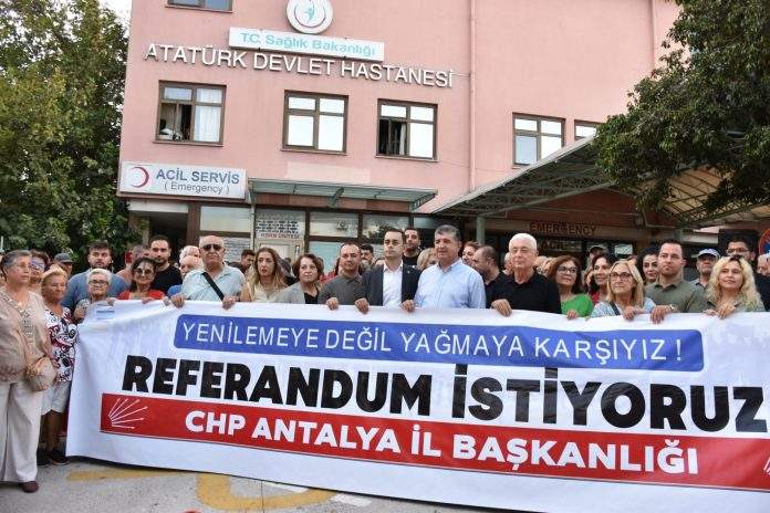 Cumhuriyet Halk Partisi (CHP) Antalya İl Başkanlığı Atatürk Devlet Hastanesi acil girişi önünde geniş katılımlı basın açıklaması düzenleyerek, hastanenin yıkılması ve yerine yapılacak proje sürecine ilişkin kaygılarını dile getirmek için Atatürk Devlet Hastanesi Acil Girişi önünde bir basın açıklamasında bulundu.